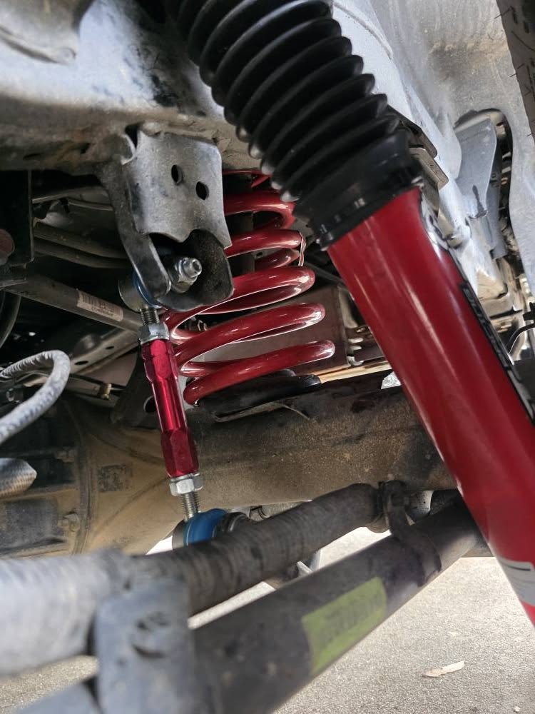 Maintains axle alignment & track width after lift. - Rear Adjustable Heavy-Duty Sway Bar Links – zinc-coated and anodized for maximum corrosion resistance and durability. Fully adjustable to suit lifted suspension setups, improving articulation, stability, and handling.